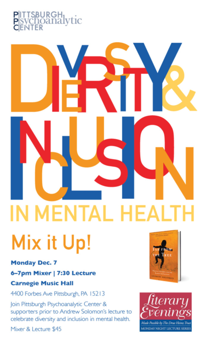 We recognize Mr. Solomon's contribution to the general understanding of mental health issues through his ground-breaking work on depression, "Noonday Demon: An Atlas of Depression," and his current work, "Far from the Tree: Parents, Children, and the Search for Identity," this latest book will be focus of the evening.